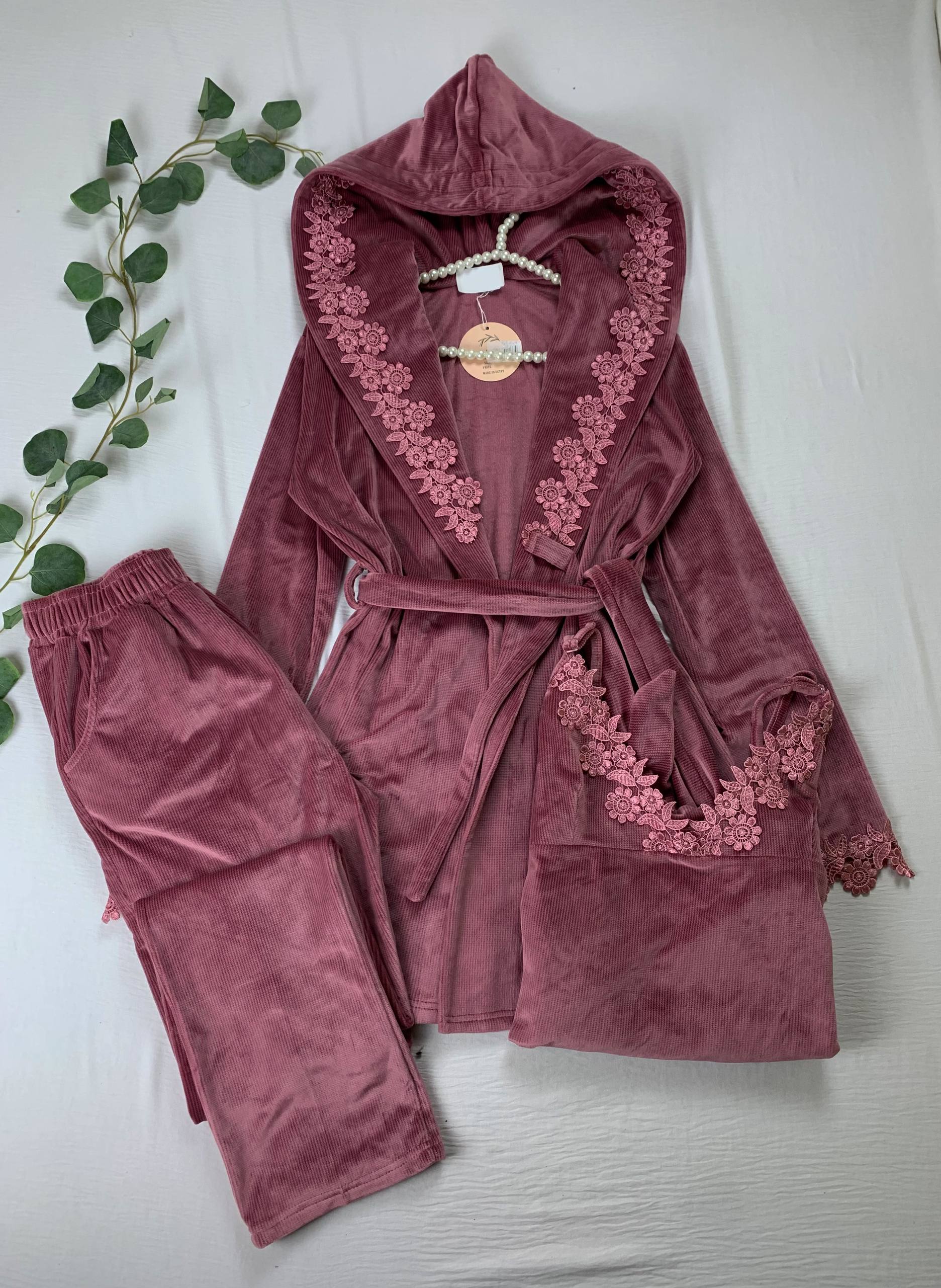 3 pieces velvet pijama Turkish fabric