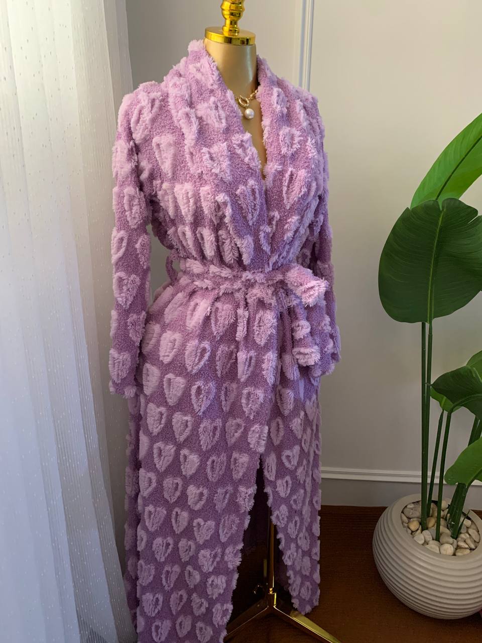 All over heart printed robe turkish fabric