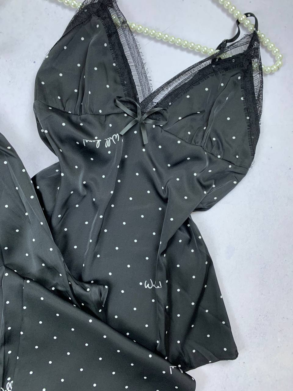 Bridal silky satin polka dot pijama set
