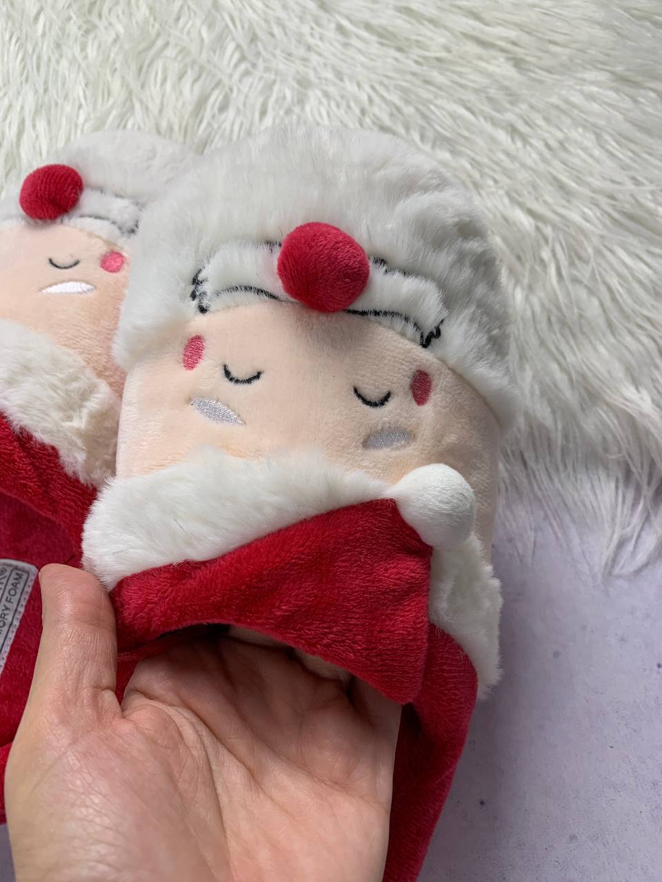 Color/Pattern: Red & off-white, cute Santa face.