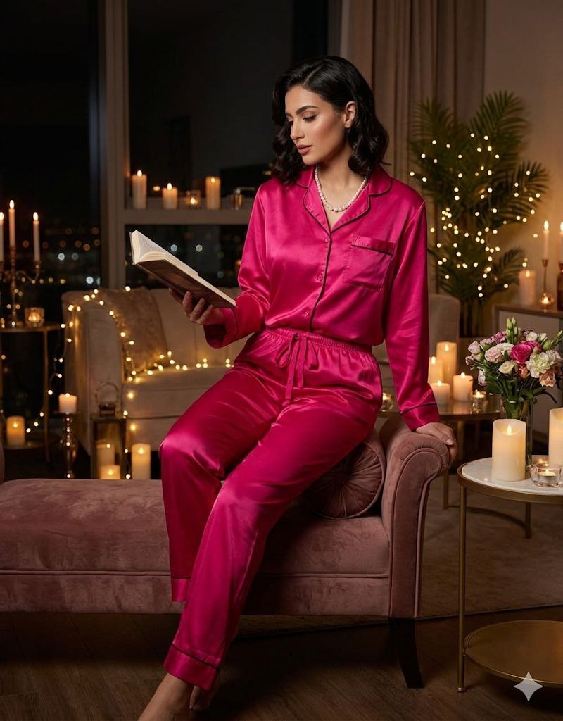 Fuchiaa satin classic brida pijama set from Esmara made in Germany