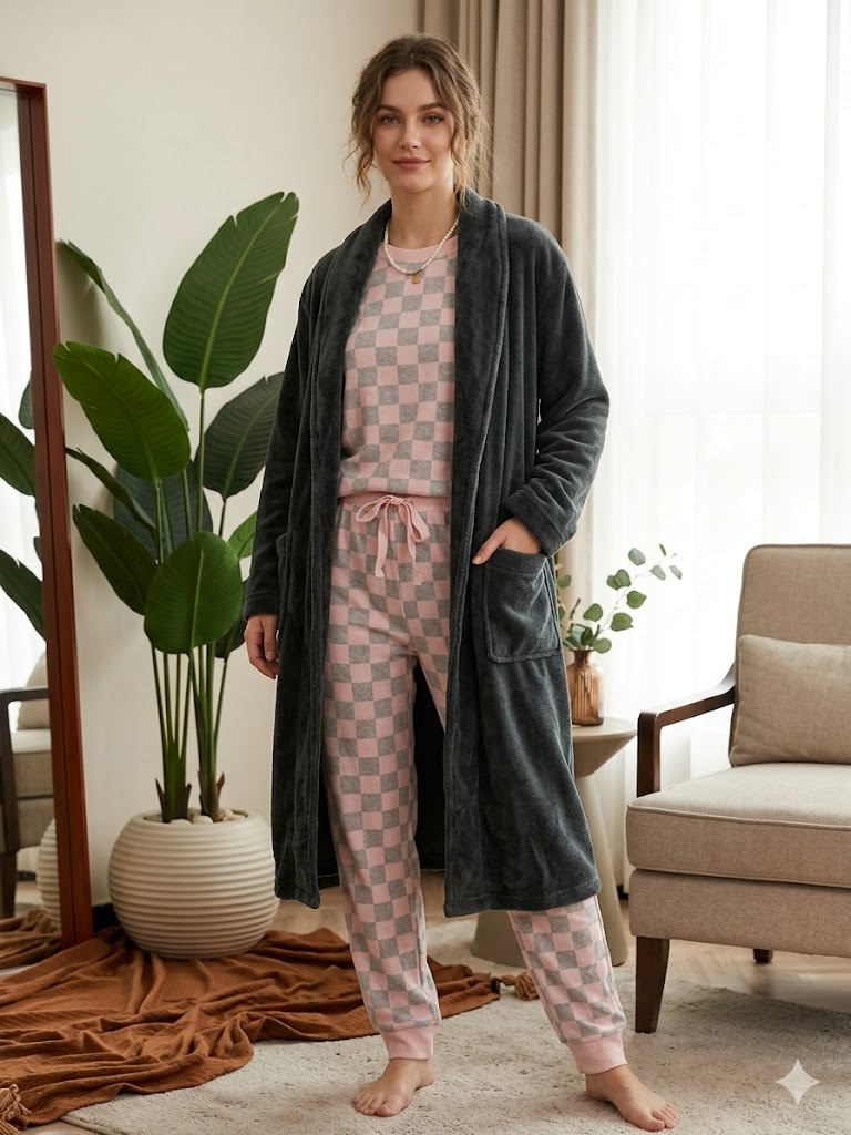 Elegant Robe&super soft knit pijama