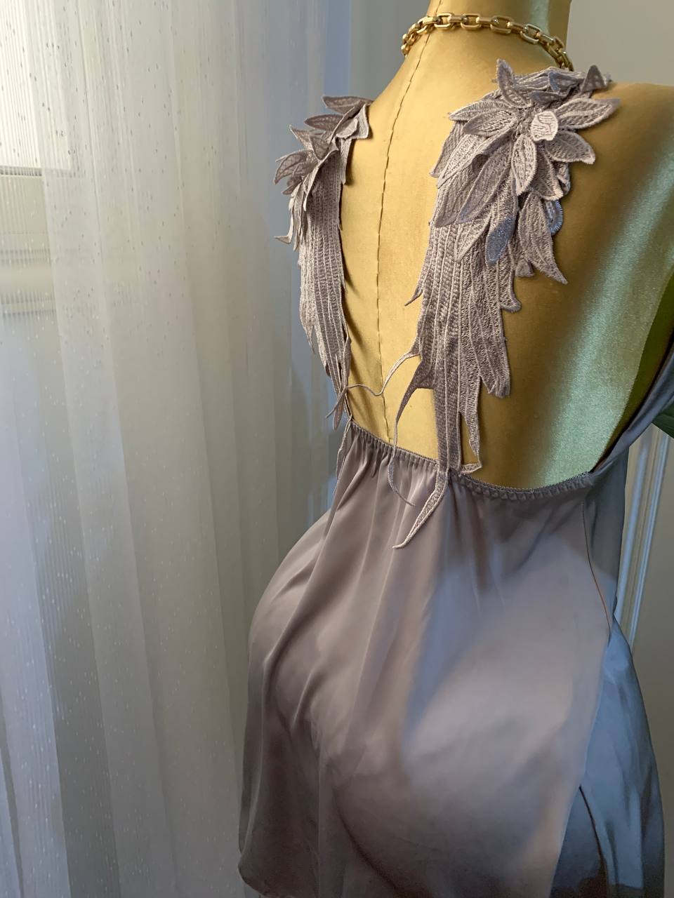 Bridal silky satin robe with feathers