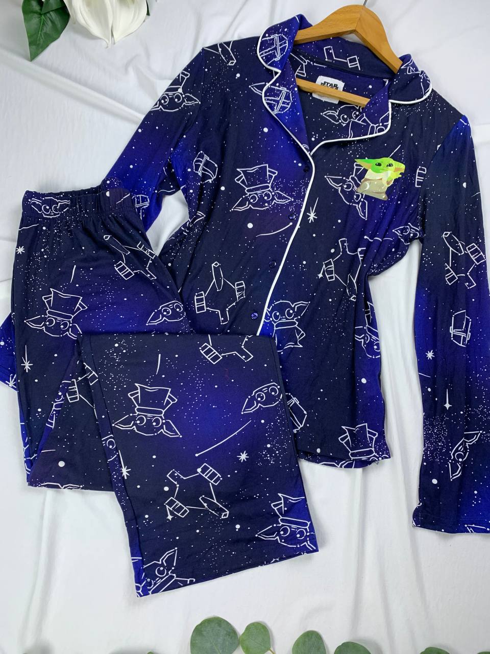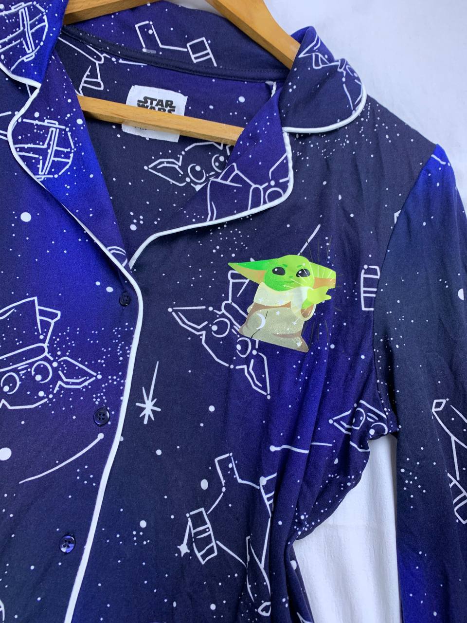 • Color/Pattern: Deep navy with space print and Yoda design.