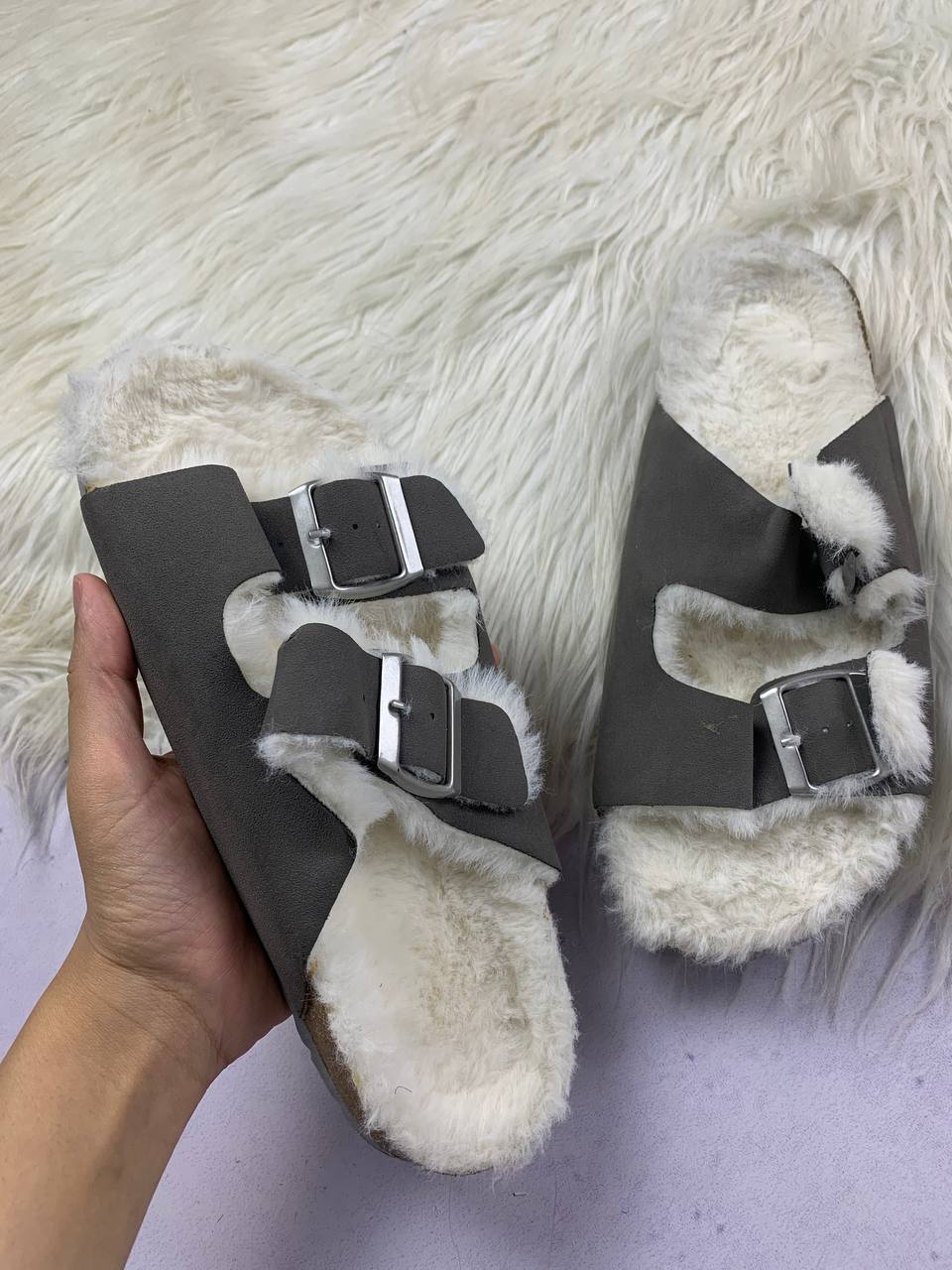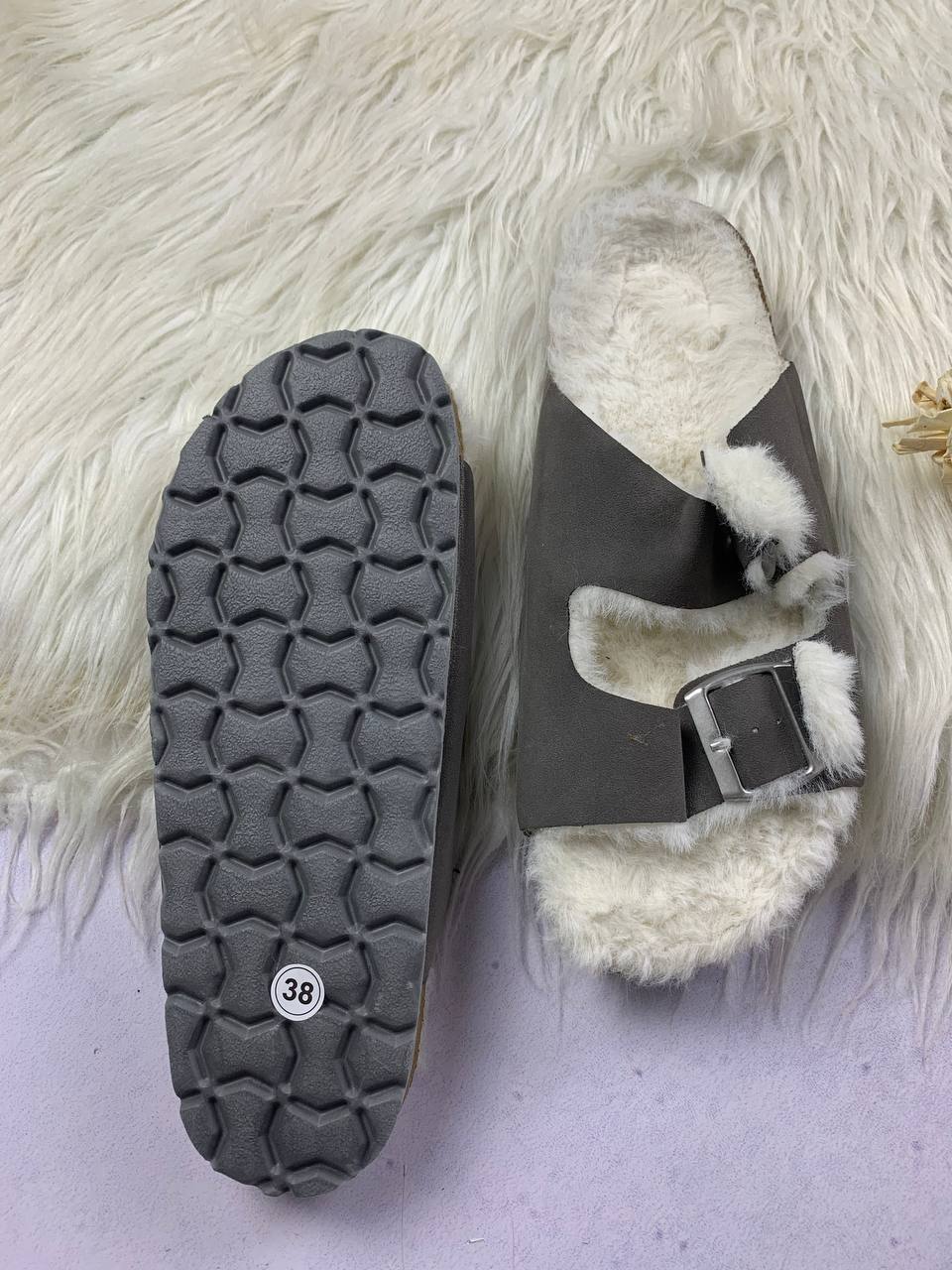 Material: Faux-suede upper with faux-fur trim/lining.