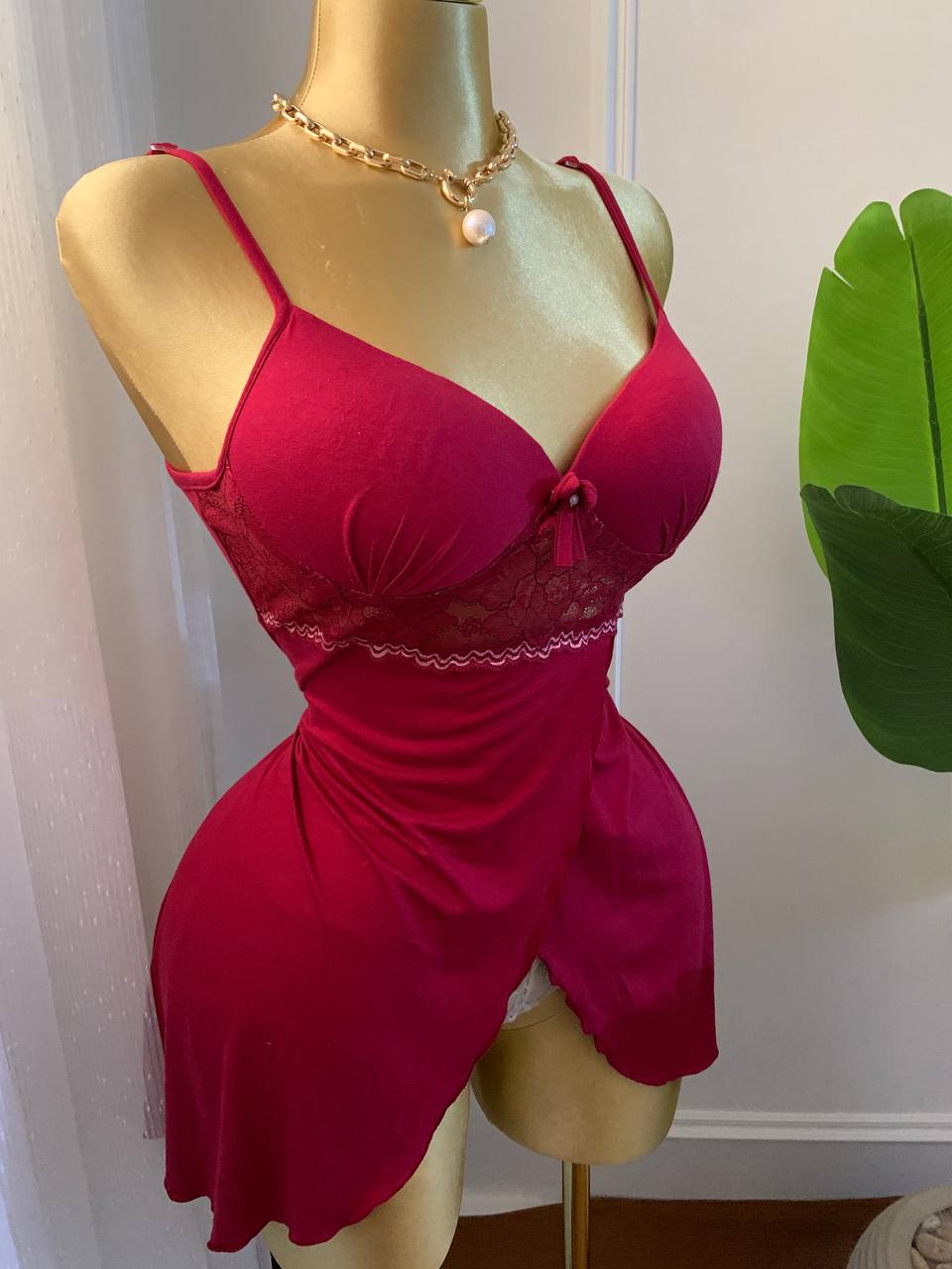 Hoot red toll babydoll with lace