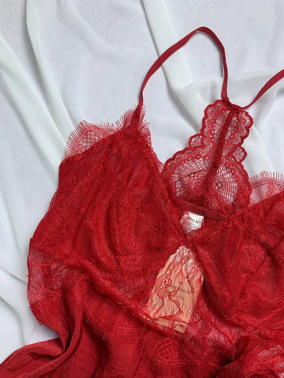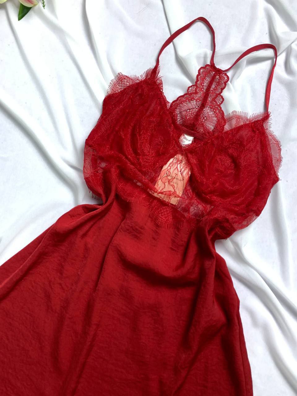 Silky satin lingerie with mesh Lace. Seductive Mini Chemise in Vibrant Red.