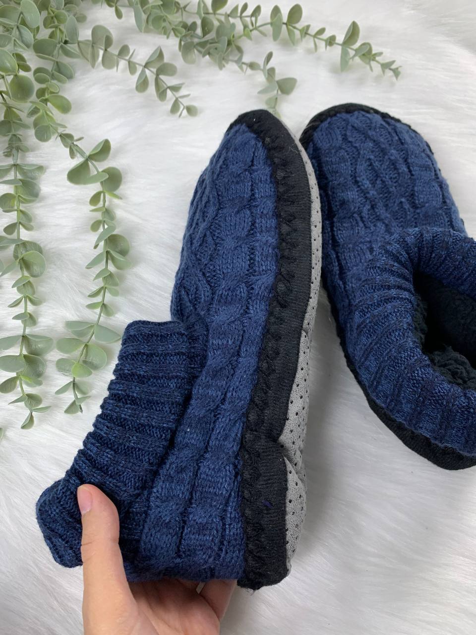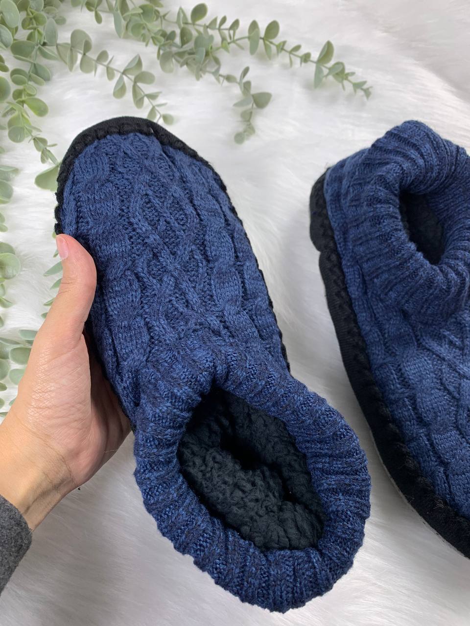 Material: Cable knit upper with soft sherpa/faux-fur lining.