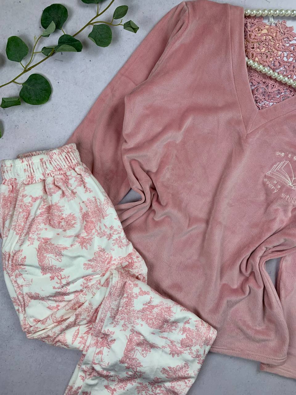 Velvet cozy pijama set turkish fabric