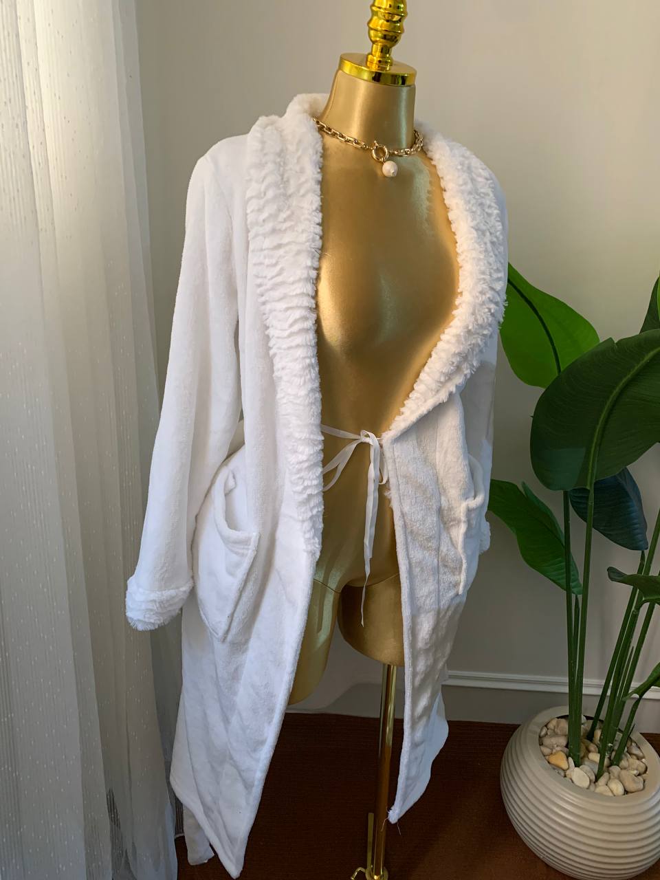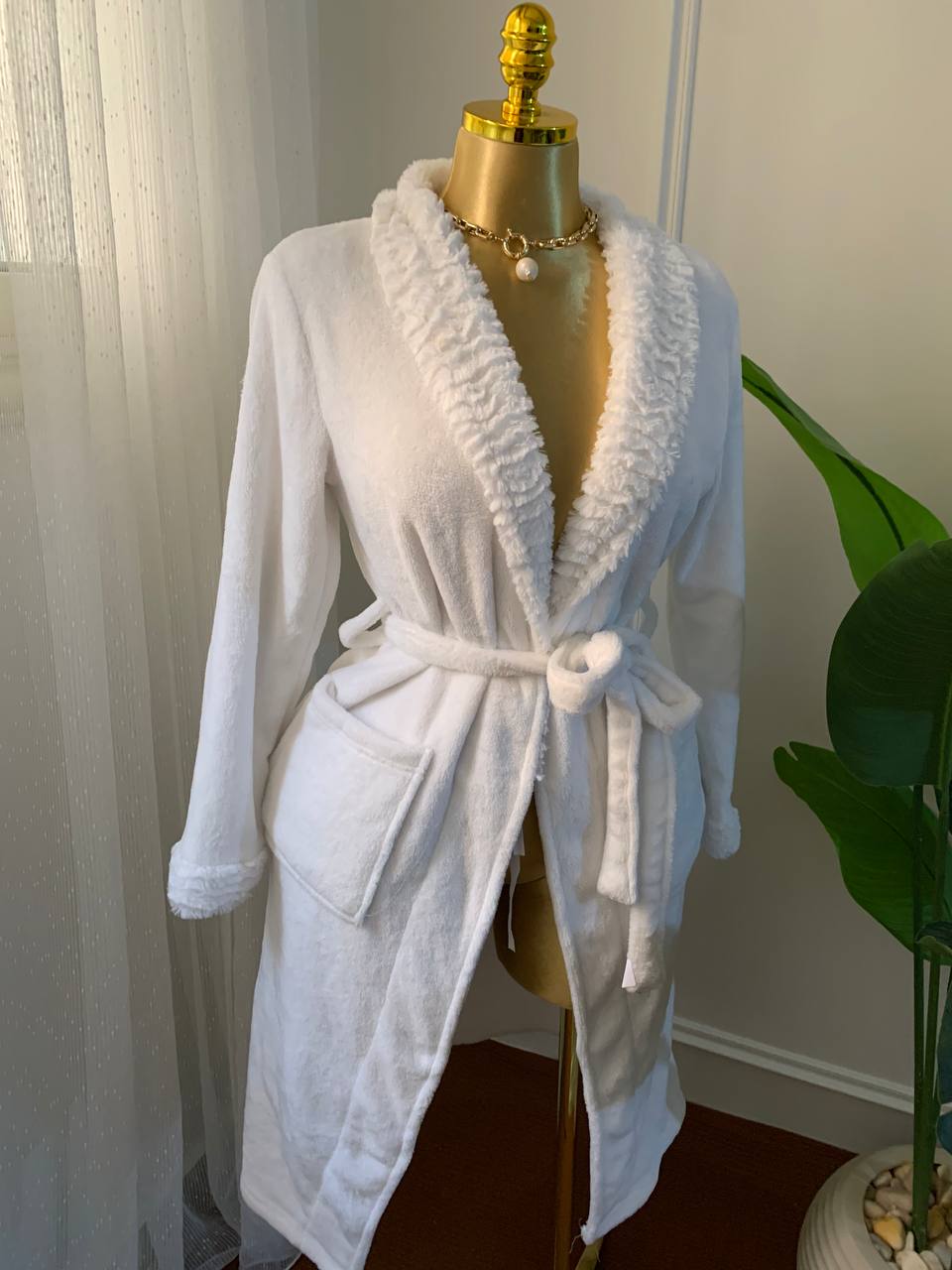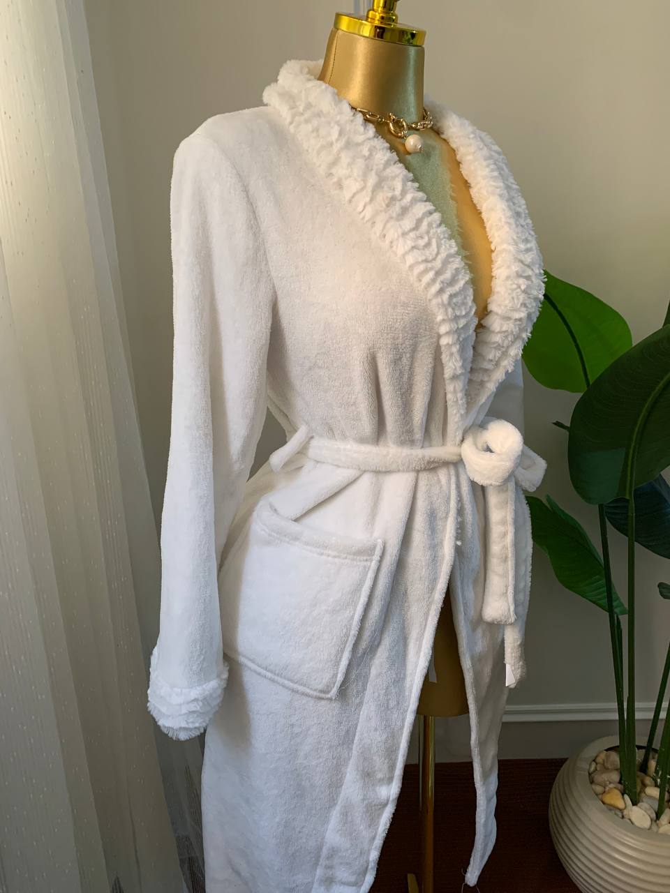 Cozy velvet with Fur belted sleeping shirt Turkish Fabric